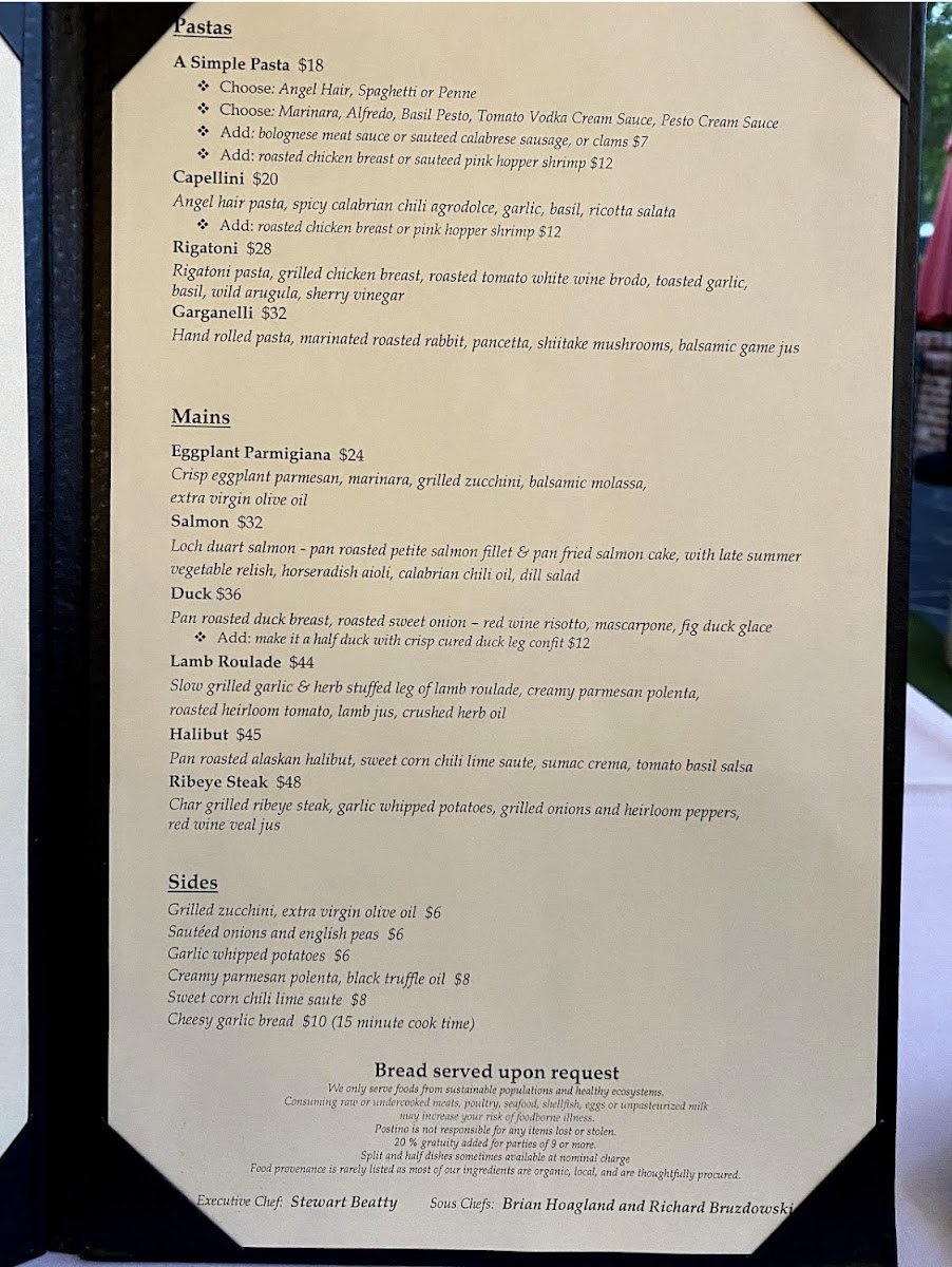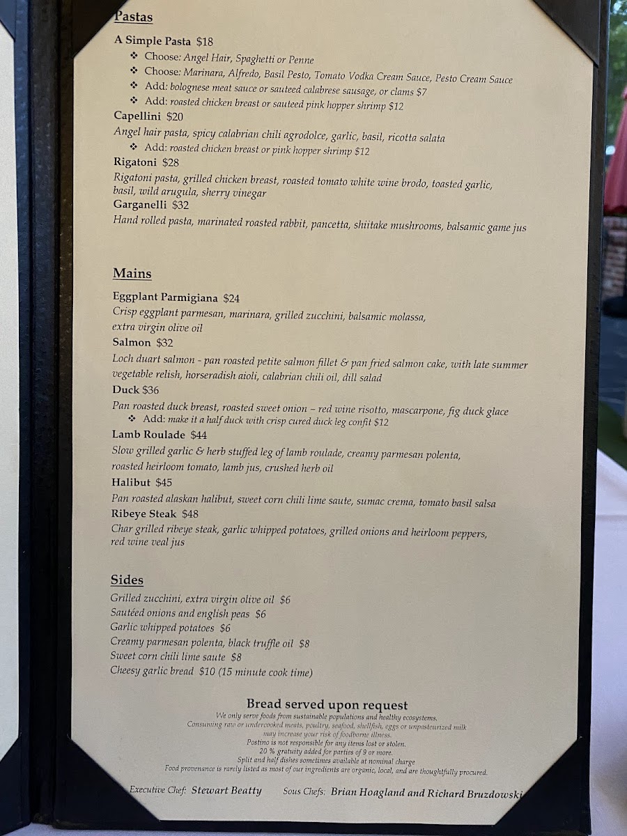 Service was absolutely excellent - very well trained and kind staff. Our wine selection was outstanding. In our group, the duck and chicken were fantastic and so was the special seasonal salad. Vegetarians beware: My angel hair pasta was literally inedible. The side of peas came barely warm and definately had the vibe of coming from the lost corner of the freezer. The side of zucchini was blah. I would say this was one of the most uneven meals I have had in a decade. Our server must have known. She was very attentive and yet didn’t ask if I liked it. The barely touched plates said it all. So sorry! This is your place if you like meat and such.