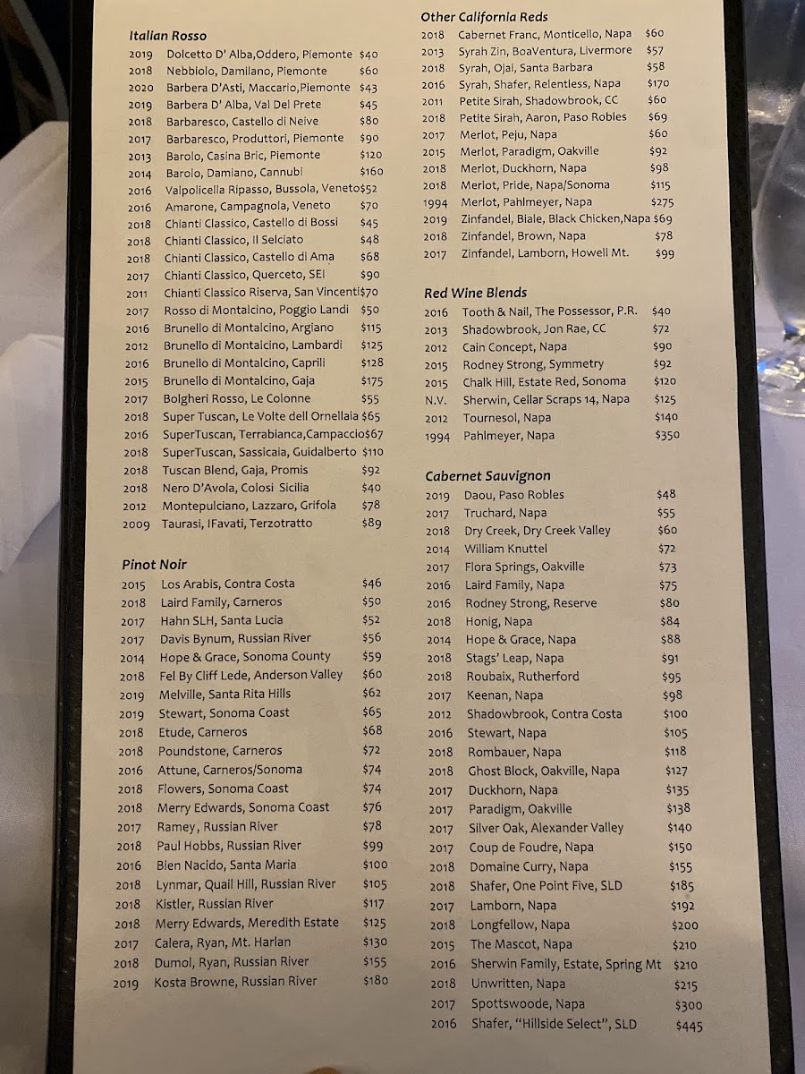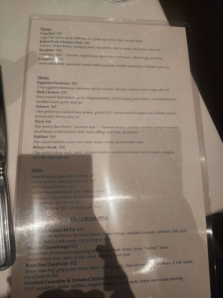 We used to go here all the time, the ambience and waitstaff are great. The drawback came when the prices just kept going up and up and…and the menu didn’t differ. Went back again last night, they were gracious to offer us a late seating if we ordered “simply”. Our waiter said he’d take care of us and order what we’d like. Again, the waitstaff is excellent. I ordered arugula salad with a side of salmon, delicious. $50 (nowhere on the menu to determine what the cost would be). Not a typo. My husband ordered the duck, also delicious. $46. As restaurants keep up with the cost of food I still find it hard to believe the prices were justified. Maybe I’m getting cheap in my old age!